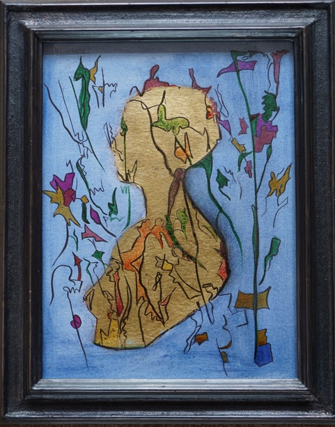 “Golden Nature Female” gold Leafe and ink on paper, framed on an oxidised silver finish. Hand made