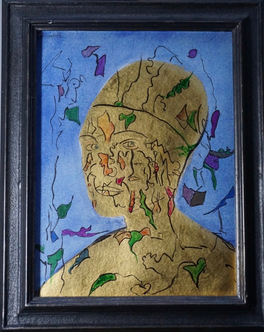‘Golden Nature Female’ ©️rebucheli Gold leaf and Watercolour on paper (40 x 30) £450 Framed on silver oxide black finish.